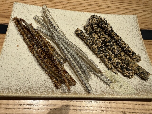 櫃まぶしと鰻の山葵あえ?と骨せんべい3種を注文しました。鰻はさすがの美味!来てよかった~と思いました。