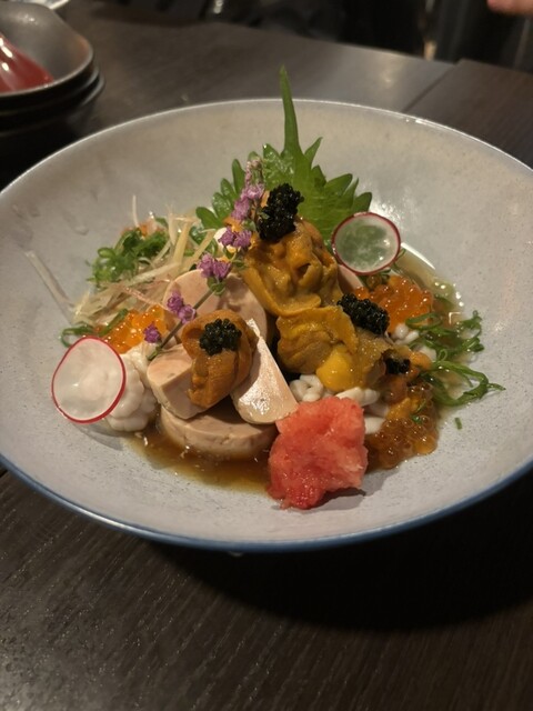 「白子・あん肝・雲丹・いくらの痛風盛り合わせ」は見た目のインパクトも味の濃厚さも圧倒的で、どれも主役級の存在感。
