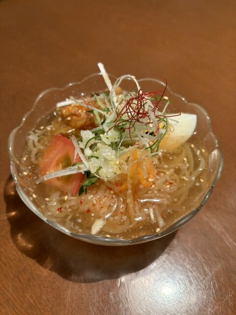 〆のあっさり冷麺は清涼感があり、りんごのジェラートまで大満足✨ 完全個室もある落ち着いた空間で、大切な方との食事にもぴったり!