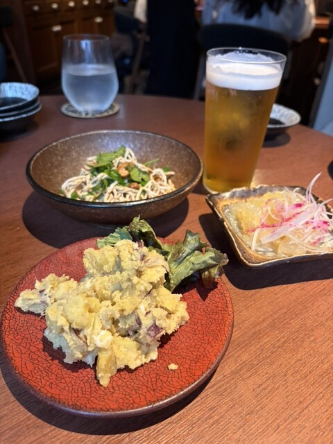 前菜3種盛りは、クラゲのコリコリした食感と塩レモンづけの爽やかな酸味が印象的で、細切り豆腐の和え物は山椒の効いた味わい。中華風ポテトサラダはサツマイモが使用されているので程よいコクがあり、スタートから期待が高まります 名物のよだれ鶏はお肉がしっとり柔らかく、香り豊かなタレが絡んで絶品でした。