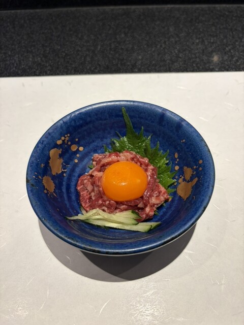 松坂牛ウチヒラの極みユッケは口溶けが良く、思わずため息が出る美味しさ。