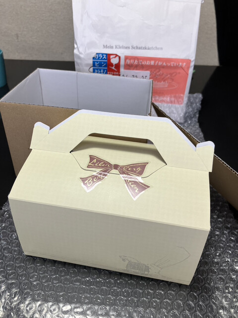 写真は、到着したときの様子をきょうだいが撮影して送ってくれたものです。どんなふうに送っていただくのだろうと思っていたのですが、ケーキの箱を緩衝材と段ボールでしっかりと囲んでくださっていました。