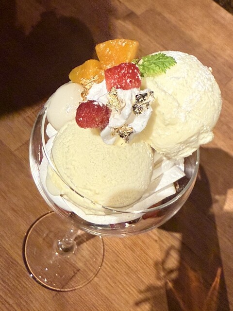 微妙な時間に2軒目行くことになり、近くにあったのでこちらにお邪魔しました。お客さんは私たち含め4組くらいおり、いい感じに賑わっていました。とても店内は静かでおしゃれ。二人でパフェを1つとカクテルを各々1杯か2杯くらい頼んで4000円弱、とてもリーズナブルでした。是非また利用したいと思います!店員さんもいい方でした!