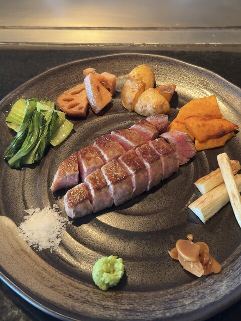 季節の鉄板焼き野菜も種類が豊富で、素材の甘みや食感が印象的でした。