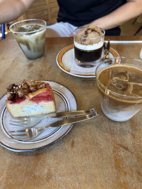 ほうじ茶ラテ、カフェラテ、ダブルチョコレートと金柑のケーキを注文。