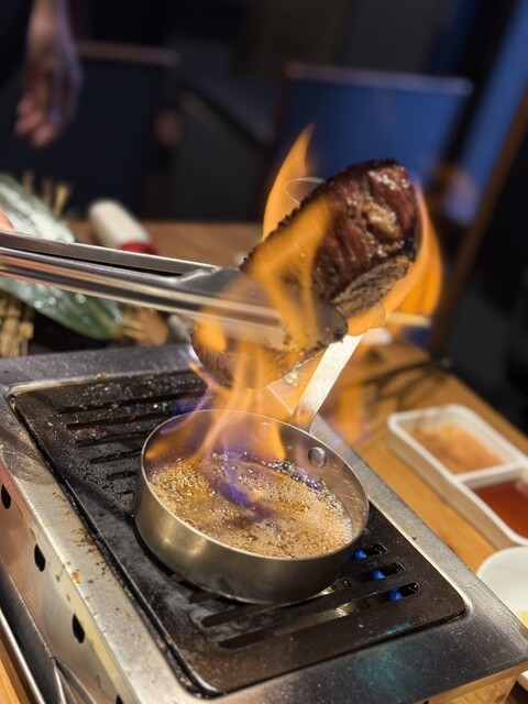 ニンニクが効いた特製ダレでいただくスタイルで、肉の旨みが際立ちます。