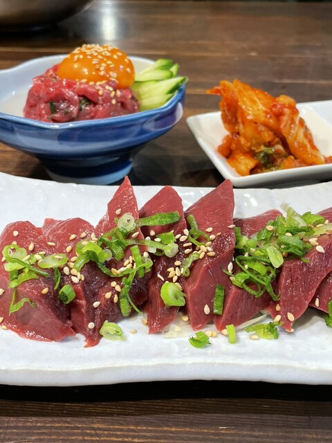 ハツ刺し、塩ユッケ、キムチ