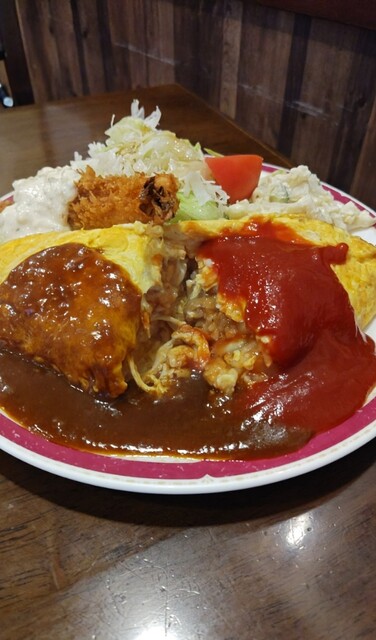 ケチャップもデミグラスソースもどちらも美味しくて、合がけは嬉しい