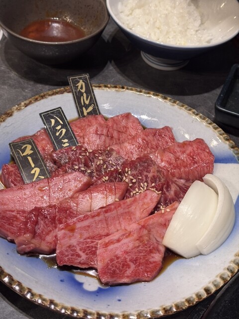 会社の同僚と飲み会に使いました‼️18時オープンに来店。30分もすれば席が満席。予約していたら間違い無いですね(^○^)人気店なのか、初めて来た人にはコースがおすすめ、呑み食べ放題コースで7000円くらいで大満足、人気メニューを食べたいし飲みたい方は難波で食べるならここがいいって感じですね。焼肉も美味しくいただけて、私は女性なので脂っこいお肉は苦手としている(男性は脂っこいカルビやホルモンが好み)が多いですが、クセや臭みがなく、ホルモンも美味しくいただきましたよ♪(^○^)生のユッケも美味しく、新鮮かつコスパがいい。女性に嬉しいのが紅茶サワー、レモンサワー、フルーツのチューハイサワーが多く、大変助かりました‼️私のオススメは、ツラミです。あとはタン、タンはぷりぷりで分厚いのに、柔らかく最高でしたね(^○^)ゆめぴりかの土鍋で出てくるお米も輝いていて最高でした‼️次飲み会があったら、店員さんも対応が良いのでここにしようと思います★