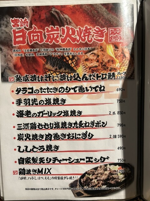 日向炭火焼きメニュー
