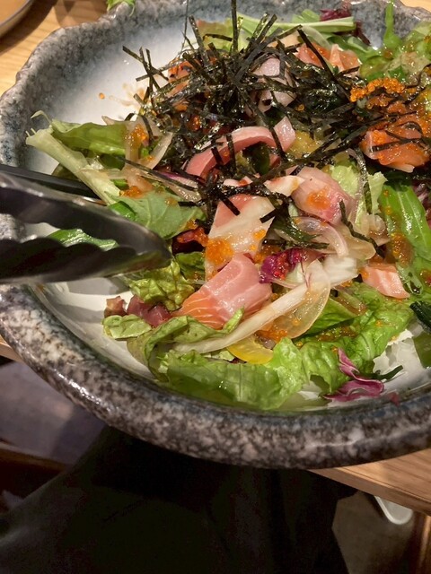 海鮮サラダは、魚介の存在感がありつつも野菜とのバランスが良く、全体的にさっぱりと食べ進められました。