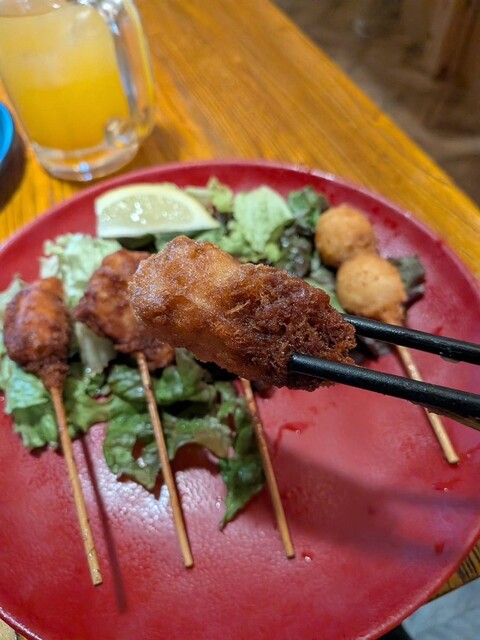 続いて肉串揚げ5点盛り。