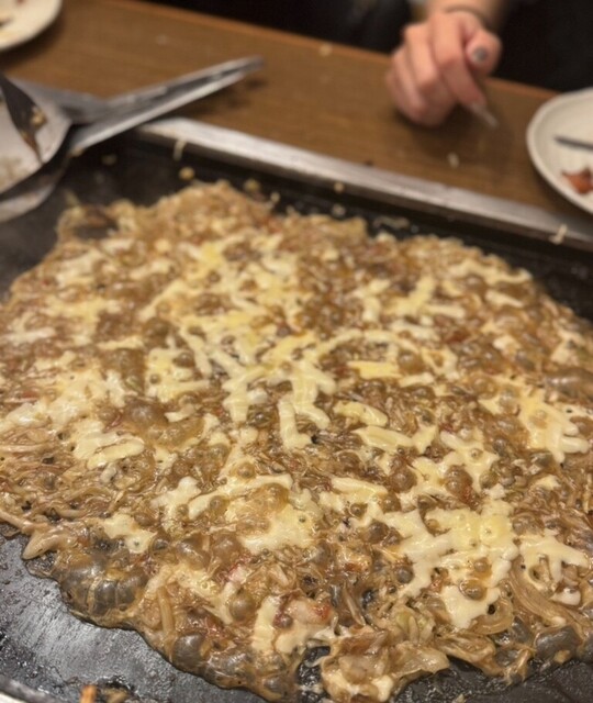 名物の明太もちチーズもんじゃを注文。店員さんが手際よく焼いてくれるスタイルで、安心して見ているだけでOKでした。明太子の塩気とチーズのコク、お餅のトロトロ感が最高に合います!