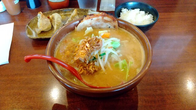 結局、自分定番の北海道味噌野菜ラーメン+炙りチャーシュー1枚+餃子3個のライスセットです。