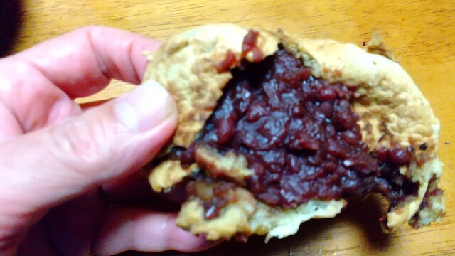 しっかり炊き上げられた餡が、個人的には最大の魅力だと思っています。昔からずっと変わらない味ですね。ただ、苦手なのが固い生地。昔ながらなので固めなのか、たっぷり入った餡を包むには、このくらいしっかりした生地でないと型崩れしてしまうためなのか、出来立ては柔らか目なのでお店で食べるのがオススメです。重厚なコクと甘さの餡は素晴らしいので、固い生地が好きな方には、堪らない一品ですね。