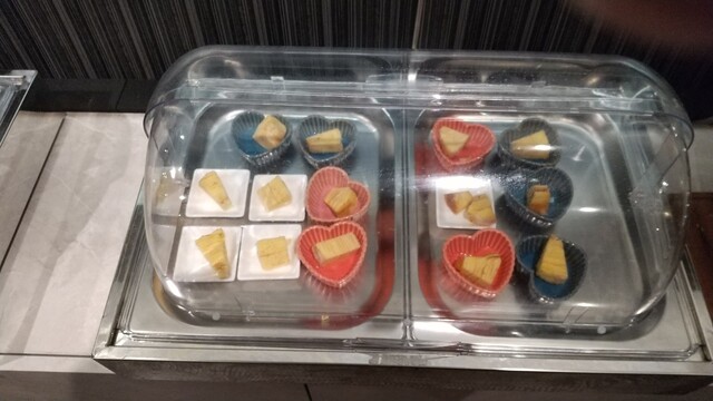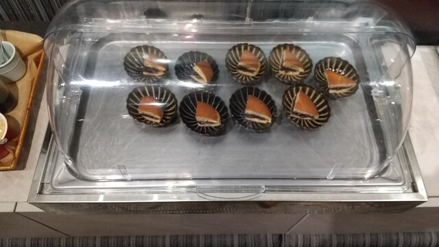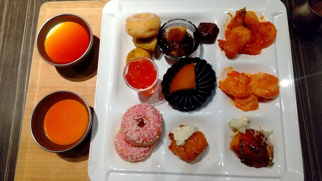 簡単な説明と席に案内されます。結構、お客様が来てますね。とりあえず、一通り見て回り物色。ケーキは有りませんでしたが、それ以外の甘味ものは有りましたので、最初から甘味もの極振りでテイクしていきます。う~ん、楽しみ。ビュッフェって、なぜかワクワクしますね・・自分だけかもしれませんが・。