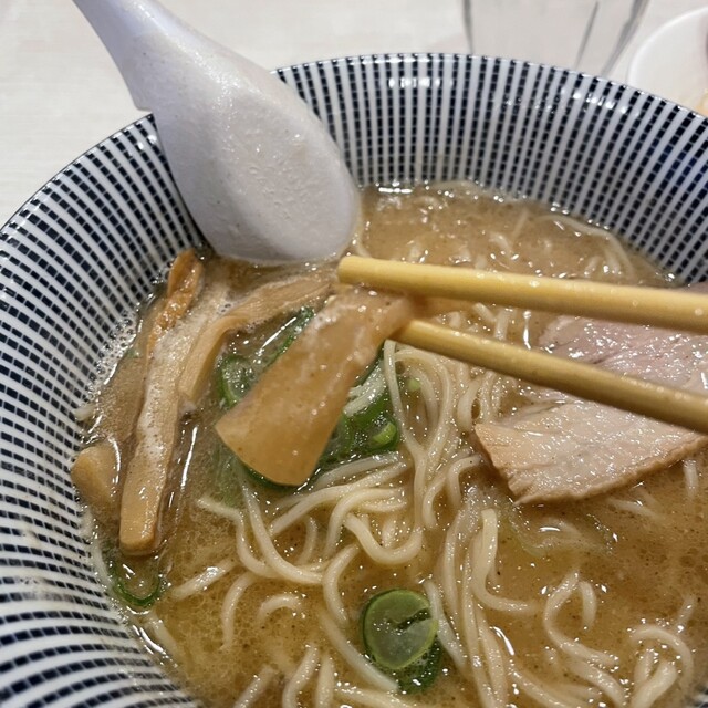 煮干し中華、焼きあご塩と食べてきた中では、いちばんこってりしてる。