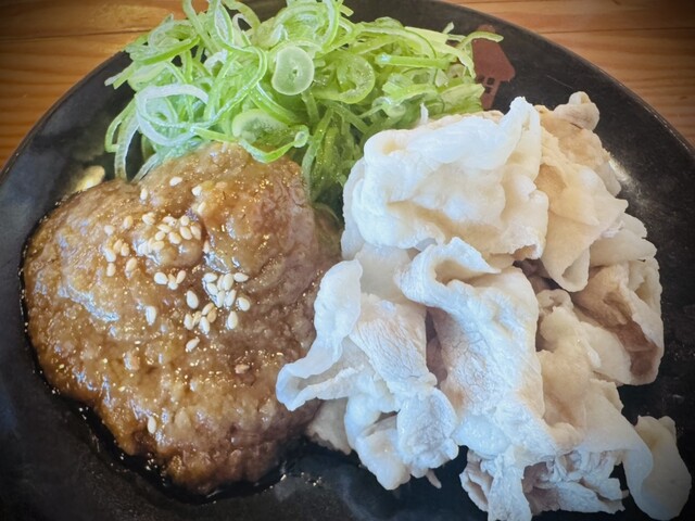 黒豚しゃぶ板そば は、名物“板そば”に黒豚しゃぶを合わせた贅沢な一品。豚の甘い脂がつゆに溶け込み、そばをくぐらせると旨味がぐっと広がる一杯。