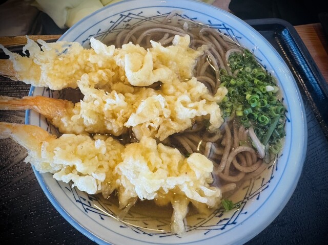海老天そば は海老天が3本並ぶ豪快さで、プリッとした海老を堪能できます。