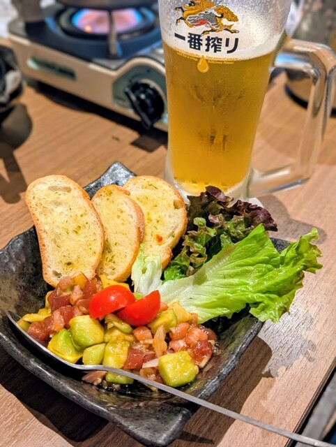 まぐろぶつ、ほほ肉のたたき、カマ焼き、マグロとアボカドのチョレギサラダ、マグロの葱しゃぶ、マグロとアボカドのタルタルユッケ、等々……他にも食べたけど食べるのに夢中で写真撮り忘れた