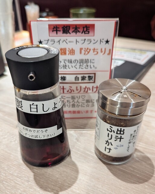 はじめは少し薄味かなっておもうかもだけど、牛銀本店オリジナルの白だし醤油【汐ちり】や青柳自家製の【出汁ふりかけ】で味を自分好みに整える事ができるからどんな方でも満足間違いなし‼️