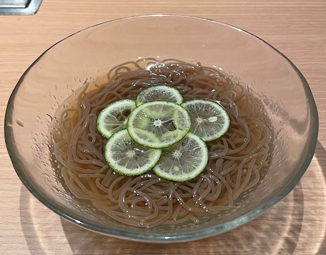 締めにはすだち冷麺。爽やかな酸味が口の中をさっぱりと整え、