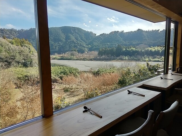店内は4人がけのテーブル席×2、2人がけのテーブル席×2、あとは宮川を眺められるカウンター席×5です。