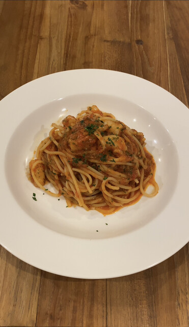 ♀️ 大葉香る、ぷりぷり海老のトマトソース