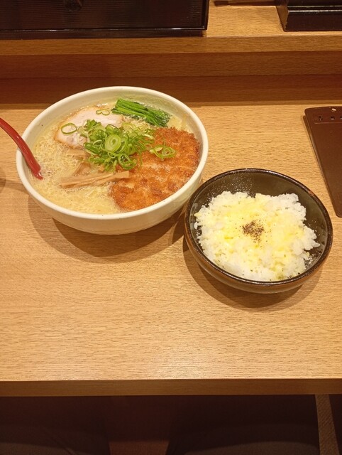 今回は少し変わり種の「とんかつ味噌ラーメン」と「チーズリゾット」を注文。ラーメンにとんかつ?と最初は驚きましたが、実際に食べてみるとその相性の良さにびっくり。スープはあっさりめで、味噌のコクはありつつも重たさがなく、とても飲みやすい仕上がりです。そのスープがとんかつの衣に程よく染み込み、噛むたびに旨みが広がります。とんかつは食べごたえがあり、ラーメン一杯でもしっかり満足できる内容でした(・∀・)