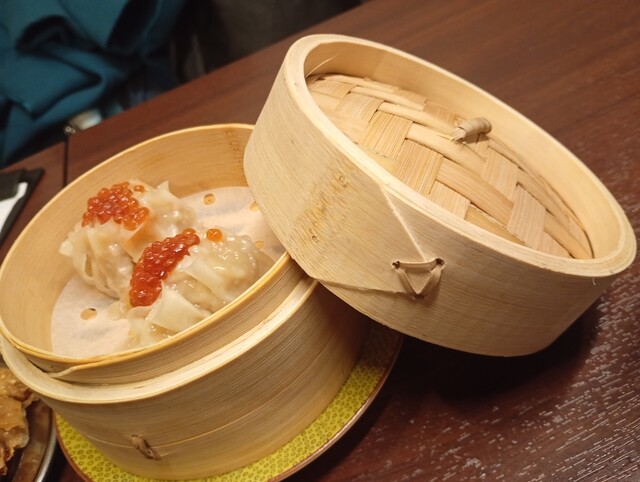 いくらのせ焼売は、特大サイズで登場しインパクト抜群。ひと口噛むと中から肉汁があふれ、上に乗ったいくらのつぶつぶ食感がアクセントになっています。焼売のジューシーさといくらの塩味が合わさり、クセになる美味しさでした(・∀・)