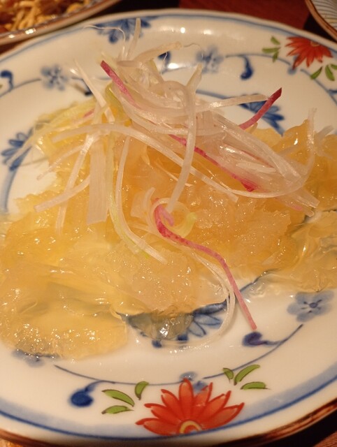 クラゲの塩檸檬漬けはコリコリ食感が楽しく、レモンの酸味が爽やか。搾菜のラー油和えも程よい塩味と食感で、箸休めに最適でした。エビのマヨネーズソースは大ぶりのエビにパリパリ衣、マヨネーズのコクとジューシーさが合わさり、間違いない美味しさ。
