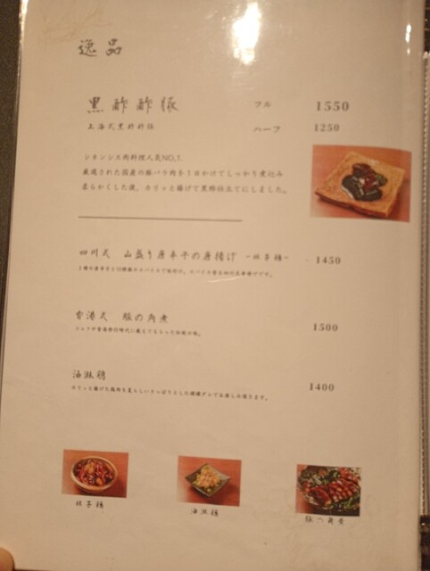 黒酢酢豚は外はカラッと中はぎっしり詰まっていて、酸味は穏やか。油っぽさがなく、さっぱり食べられるのが印象的です。黄色麻婆豆腐は見た目に反してかなり辛めですが、柑橘系のアクセントが効いていて、辛さの中に旨みがしっかりあります。上海蟹のリゾット炒飯は、あんかけがとにかく秀逸で、締めにふさわしい一皿。
