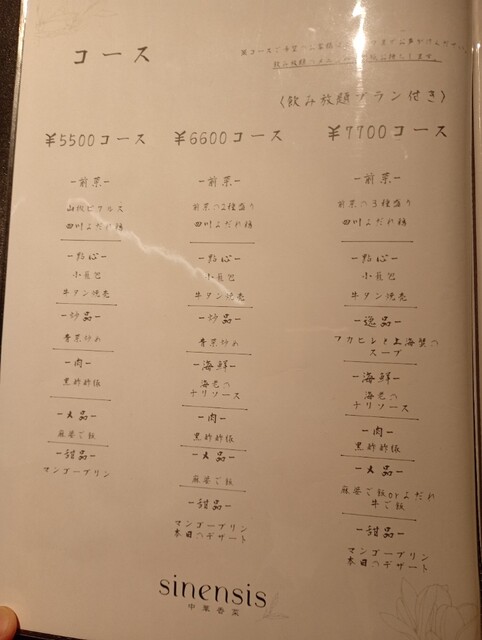 「sinensis(シネンシス)」は、一言で表すなら“和風に寄った洋風中華”。中華料理の枠に収まりきらない、洗練されたアレンジと上品な味付けが印象的なお店です。店内は落ち着いた雰囲気で、大人がゆっくり料理と向き合える空間。最初から最後まで、丁寧さが伝わってくる時間でした(^ω^)
