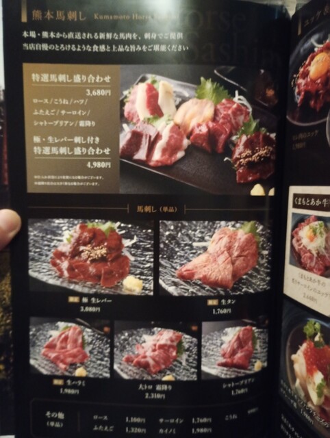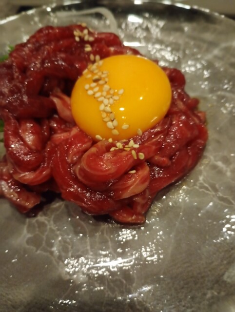 まず「特選馬刺し4種盛り合わせ」は、鮮度が抜群。それぞれの部位の食感や甘みの違いを堪能できます。続く「本日のユッケ」は、濃厚な黄卵を崩して絡めると、お肉の旨味がさらに引き立ち、お箸が止まりません♪