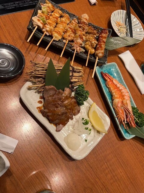 まず驚かされたのが特大エビの塩焼き。提供された瞬間にテーブルが一気に豪華に。皮の香ばしい焼き目と、ほんのり甘い身のジューシーさが際立ち、シンプルな塩味で素材の旨みがしっかり引き立っていました。これは絶対に頼むべき一品。