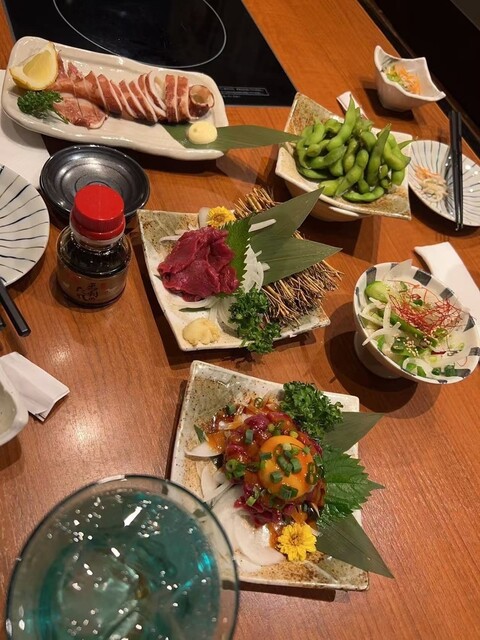 さらに今回は刺身系も注文し、馬刺し赤身と会津産の馬刺しユッケを食べ比べ。赤身はクセがなく非常にさっぱりしていて、噛むごとに上品な甘みがふわっと広がります。一方ユッケはとろっと濃厚で、卵黄のまろやかさと合わさることで旨みが倍増。薬味の香りも良く、二つのタイプを比較しながら楽しめました。