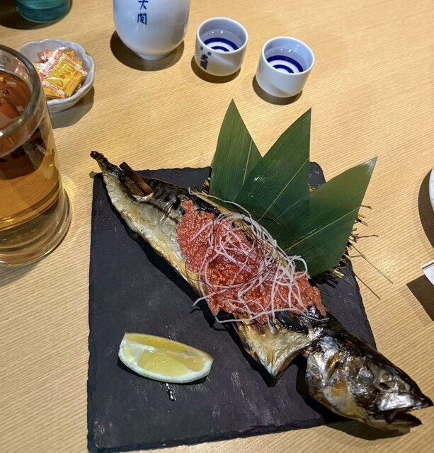 脂ののった大ぶりのさばに、ピリッとした明太子の風味が重なり、濃厚ながらも後味はさっぱり。炉端で丁寧に焼き上げられており、皮目はパリッと香ばしく、身はふっくら。これはぜひ頼んでほしい看板メニューです。