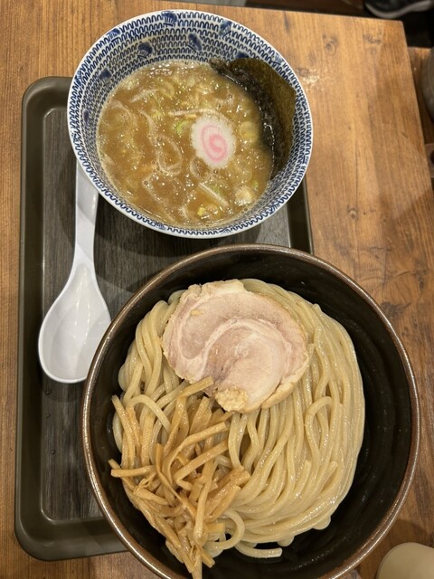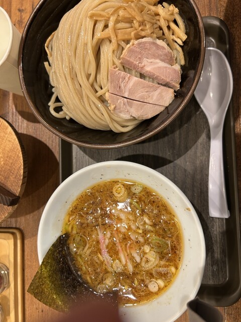 ラーメンも美味しいから、母はそちらなのですが、今日は創業つけ麺というボタンを見つけ、それを購入