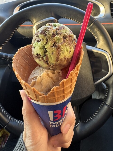 いろんな種類があるのでお気に入りと1つと新作などを1つのダブルをワッフルコーンで楽しむのが自分流