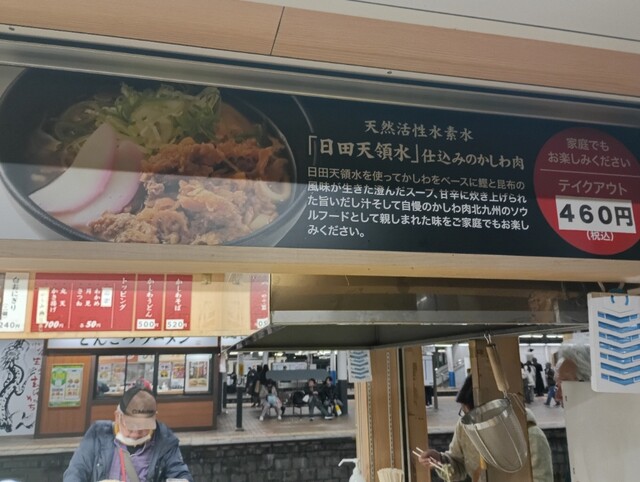 この日宿泊予定の東横イン北九州空港にはカレーサービスがあるので基本に立ち返り、ホームでかしわうどん500円をいただきました。