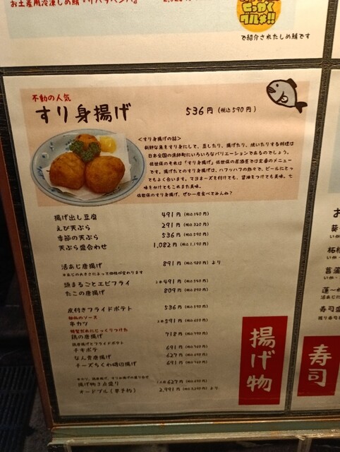 最初来たときはメニュー選びにワクワク感が有りましたが、いかや鯵の姿づくりやすり身揚げを外すとこれというものが見当たりません。