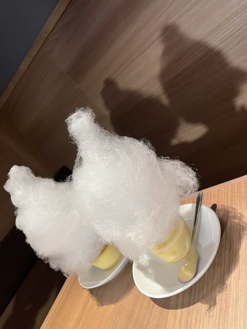 そしてデザートで出てきたプリンには、かわいすぎる綿菓子がふわっと乗っていて思わず笑顔に!!!