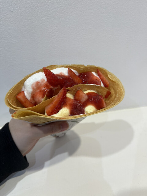 夜に食べる背徳クレープ。期間限定・苺ホイップカスタード
