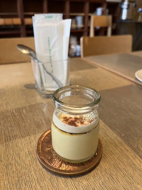 プリン自体の味は控えめですが、上にのっているクリームソースとパウダーのほろ苦さが相性よく、全体として“ティラミス風”の味わいになっていて面白かったです。