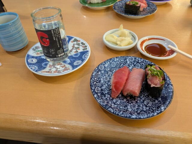 寿司は本鮪三昧、ブリ、かっぱ巻海鮮ぶっかけ、蒸し牡蠣軍艦、バクダン巻、端材軍艦、皮焼きサーモン