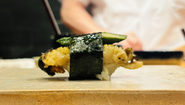 現在の店主である天野功一氏は1956年に福岡県北九州市で生まれ、高校卒業後に中村調理製菓専門学校調理師科を修了、東京の寿司店で勤務を経て父・時夫氏の元で修行を積まれました。