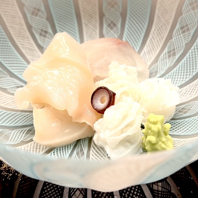 【お造り(甘鯛、アオバイ貝、アラ、岩牡蠣)