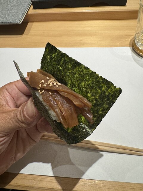 鮨はどれもテンポ良く提供され満足いくコースでした。茶碗蒸し提供の際は演出あり面白かったです。この内容でこの価格は破格です!