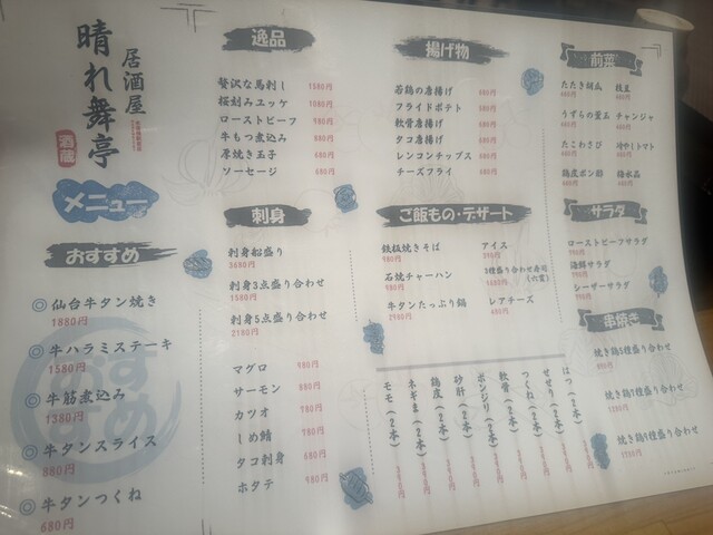 大衆居酒屋なのでクオリティはあまり期待していませんでしたが、お通しが800円だったり強気の値段設定は疑問が残りました。