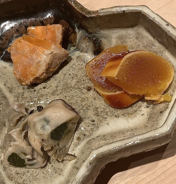 鮨はしもとは、肩肘張らずに“きちんと美味しい”を味わえる一軒。握りの温度とシャリのほどけ方が心地よく、ネタの輪郭が立ちながらも全体はやさしくまとまります。中でも石司のマグロは印象的で、香りがふわっと立ち、赤身の旨みが舌にすっと伸びる。トロは脂が重くならず、後味が澄んでいて次の一貫を呼ぶタイプ。つまみも丁寧で、出汁や酸の使い方が上品。大将の所作は無駄がなく、会話の距離感も絶妙。コースの流れが良く、最後まで集中して食べられる満足感がありました。季節で表情が変わりそうなので再訪確定。席は多くないので早めの予約が安心です。